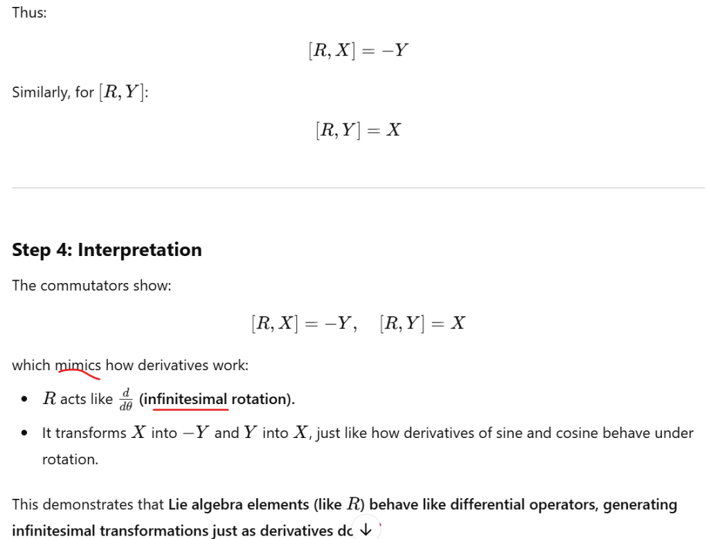 Lie algebra arises from the study of Lie groups, which are groups that describe continuous symmetries (e.g., rotation, translation). It is the tangent space on each point in the Lie group. However, in terms of derivative, Instead of taking a derivative of a function, we look at how small transformations behave under commutation.