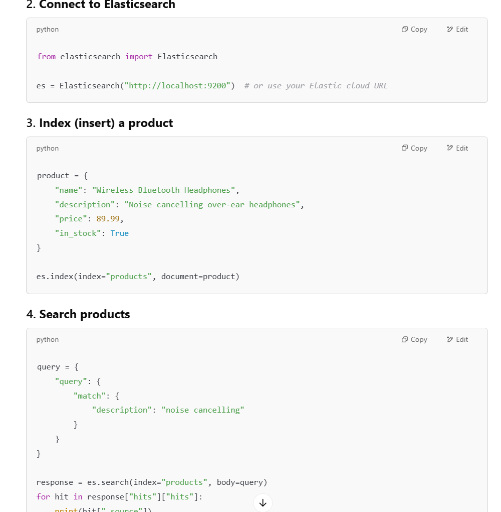 Elastic Search: stores data in JSON documents (kind of like a flexible NoSQL database); It builds a structure called an inverted index — think of it like a book index on steroids that knows every word and where it appears; It supports full-text search, filters, sorting, relevance ranking, fuzzy match (typo-tolerance), and aggregations (mini analytics)