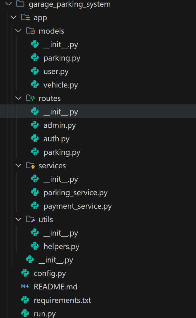 Then simple codes for models.py handles veehicle and ticket, parking_lot.py handles slots, billing.py and gate_entry.py.