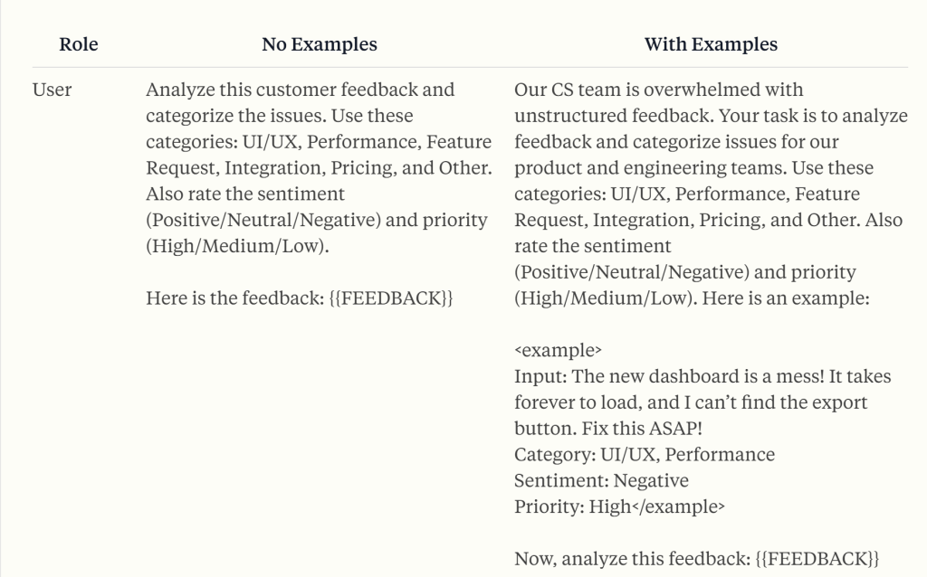 Use Examples: Examples are your secret weapon shortcut for getting Claude to generate exactly what you need. By providing a few well-crafted examples in your prompt, you can dramatically improve the accuracy, consistency, and quality of Claude’s outputs. This technique, known as few-shot or multishot prompting, is particularly effective for tasks that require structured outputs or adherence to specific formats.