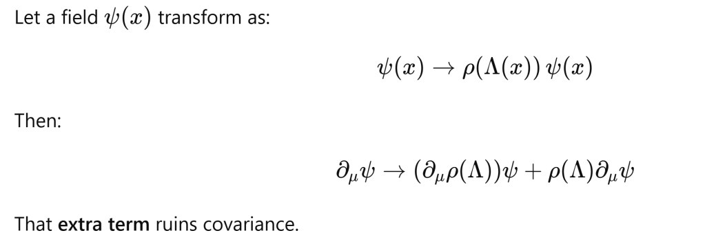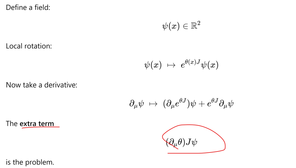 There is global symmetry and local symmetry, locally, due to curvature, field also transform. Gauge theory is just matrix-valued calculus enforcing local symmetry consistency.