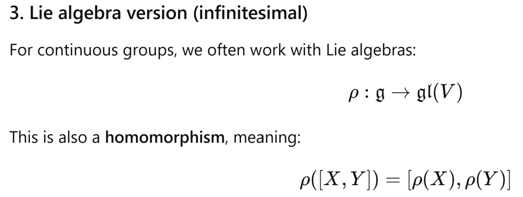 Representation theory is the study of how abstract algebraic structures (like groups, algebras, Lie groups, Lie algebras) can be represented concretely as linear transformations (matrices) acting on vector spaces.