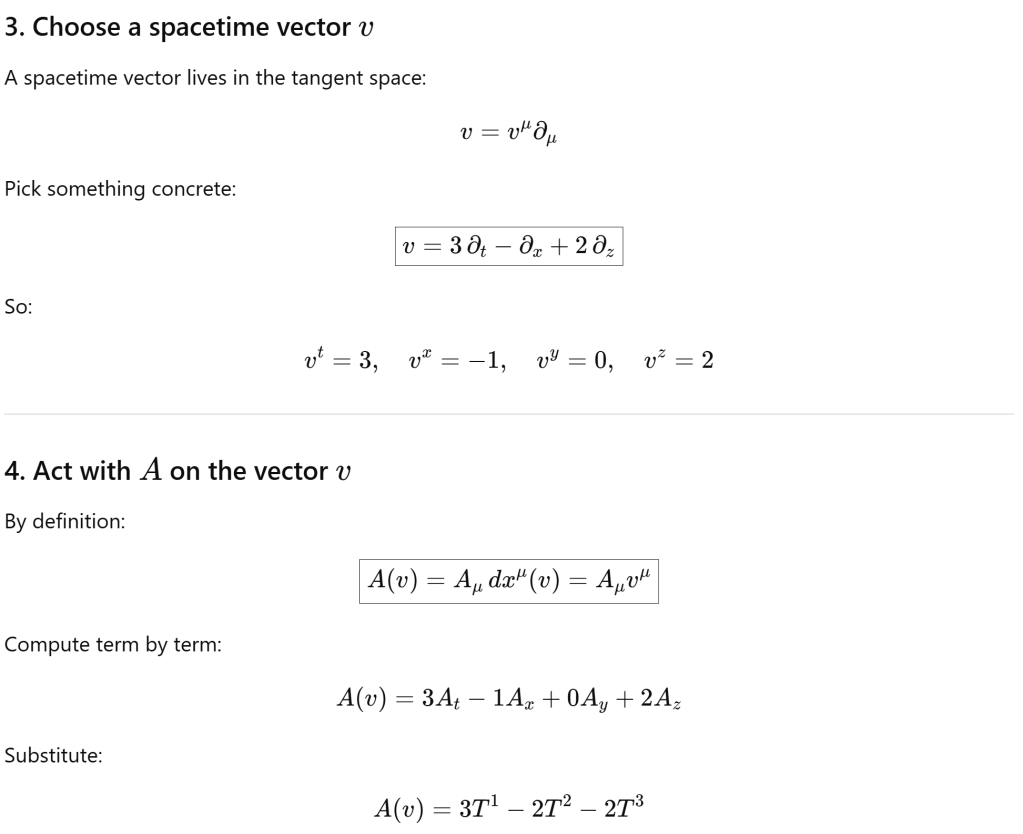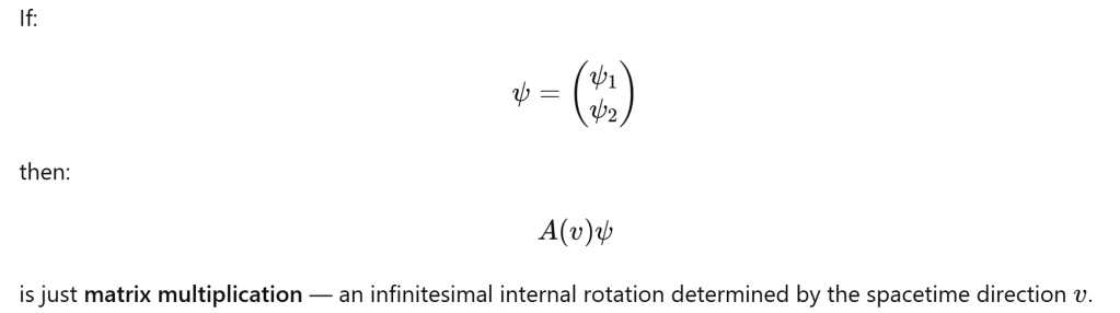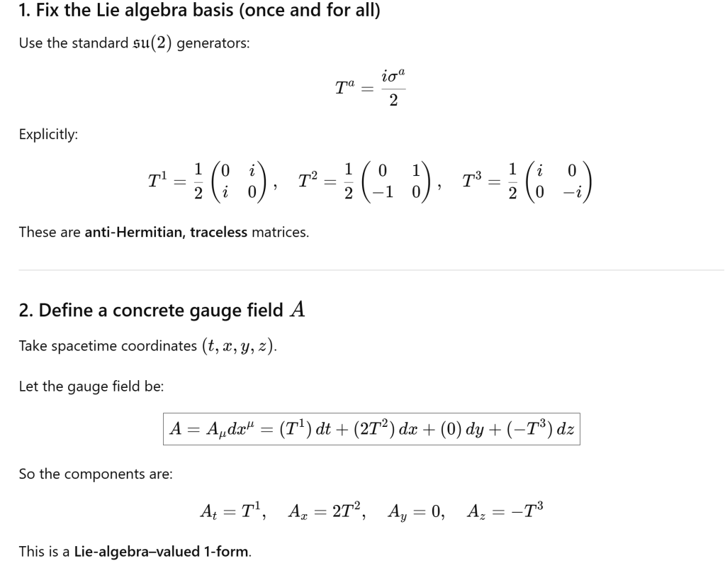 Let’s illustrate by a concrete example: SU(2) gauge field acting on a spacetime vector.