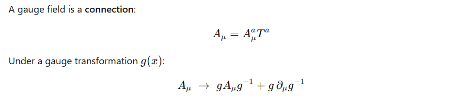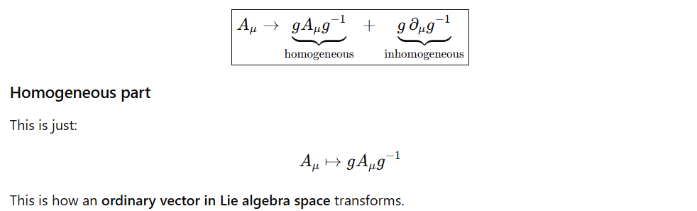 It also reinforce understanding of the curvature F is an invariant because F transform homogeneously. To see that clearly, let’s start from the gauge connection A: