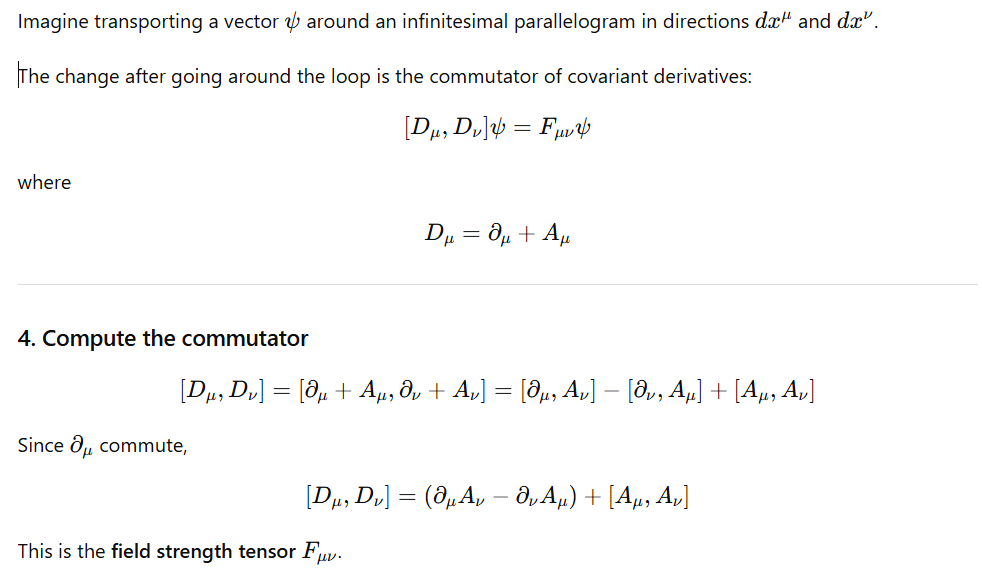 The goal is to measure how much the gauge connection “twists” or “fails to commute” when we move around a small loop in spacetime. This failure to close is called curvature — it encodes the field strength and force.