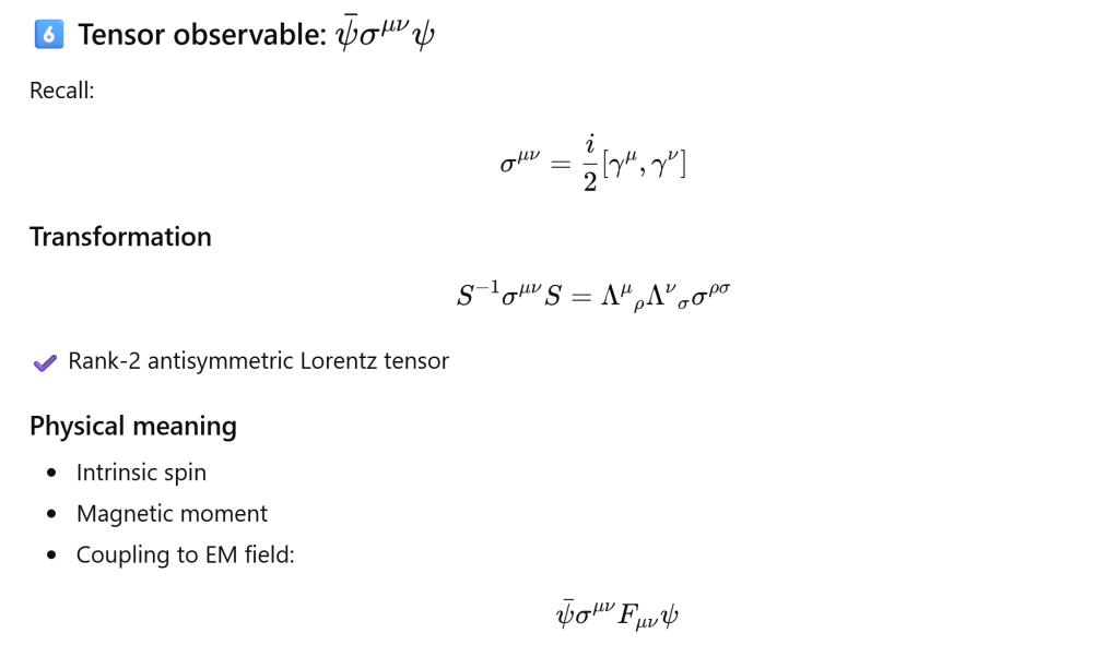 The nature lets us observe ψˉψ,ψˉγμψ,ψˉσμνψ, it’s from Born’s rule equipped by operator’s property of eigen state and eigen value.
