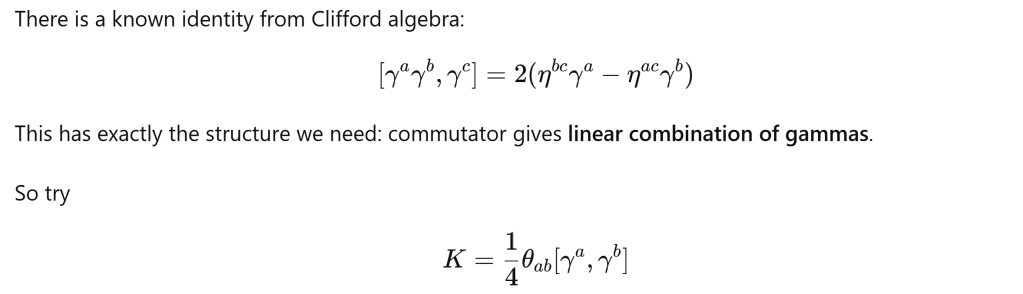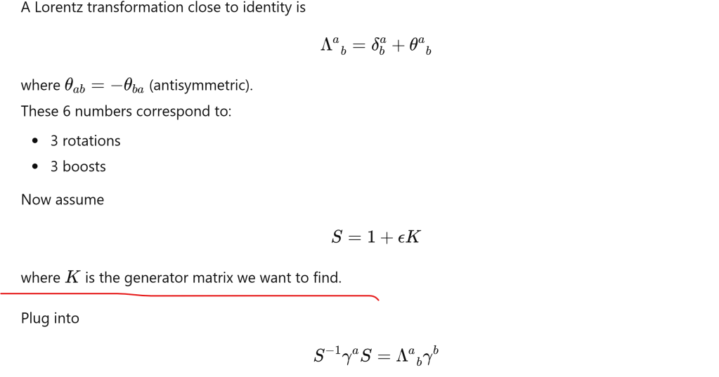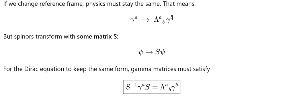 For spinors, the key object is the gamma matrices inside the Dirac equation: