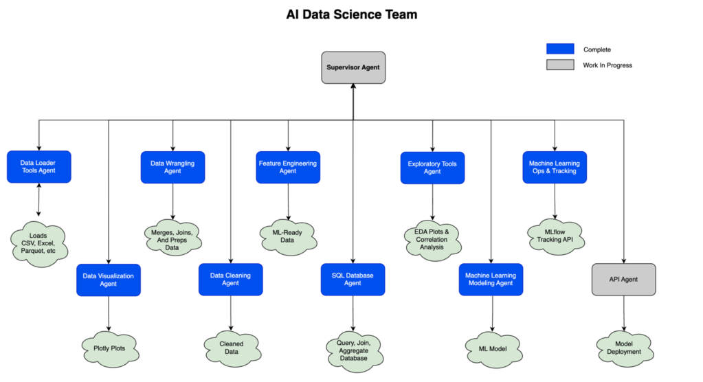 There are data_cleaning_agent, data_loader_tools_agent, data_visualization_agent, data_wrangling_agent, feature_engineering_agent, workflow_planner_agent. reference ai-data-science-team/ai_data_science_team/agents/data_cleaning_agent.py at master · business-science/ai-data-science-team
