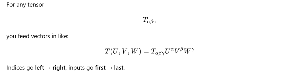 What’s the sequence of applying vectors to (0,n) tensor?