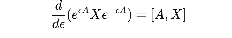 which means The adjoint action of on is the Lie bracket or The infinitesimal adjoint action generated by A sends X to their commutator.