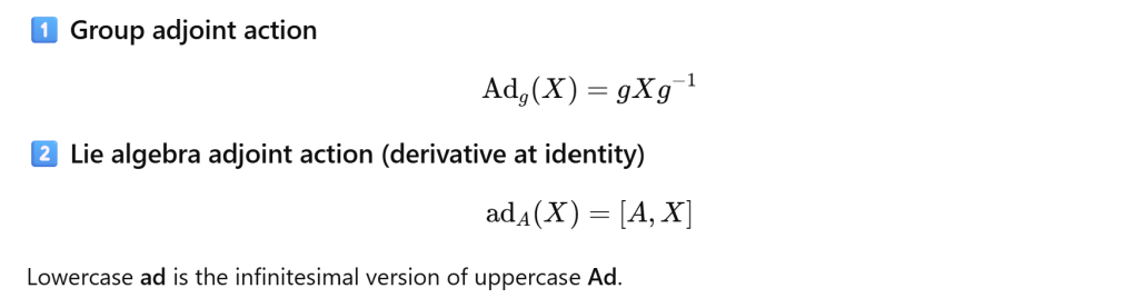 Another math definition of Lie Algebra is that it is the derivative of conjugation.