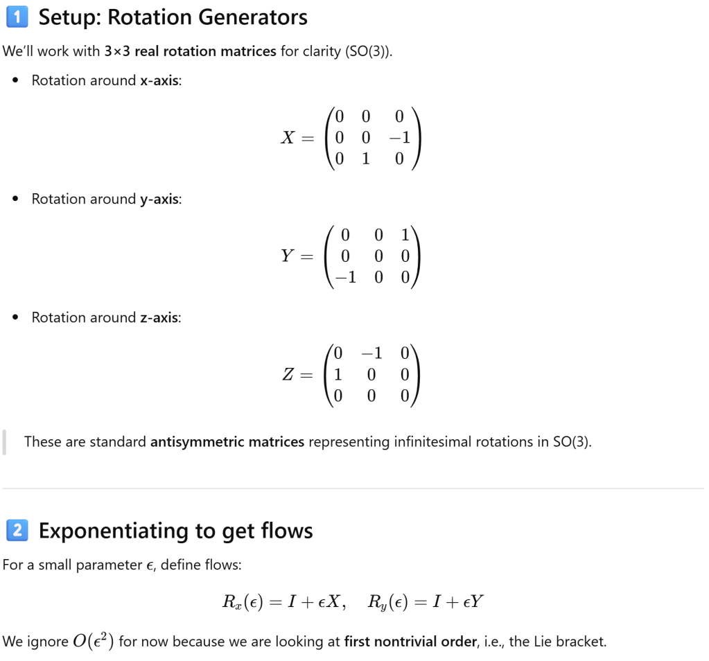 Lie Bracket is the Derivative of Conjugation, Hence Measuring How Rotation Fails to Commute! To illustrate this point, I’d like to start from the definition of Lie Algebra and Lie Bracket.