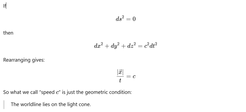 - Timelike: → massive particles