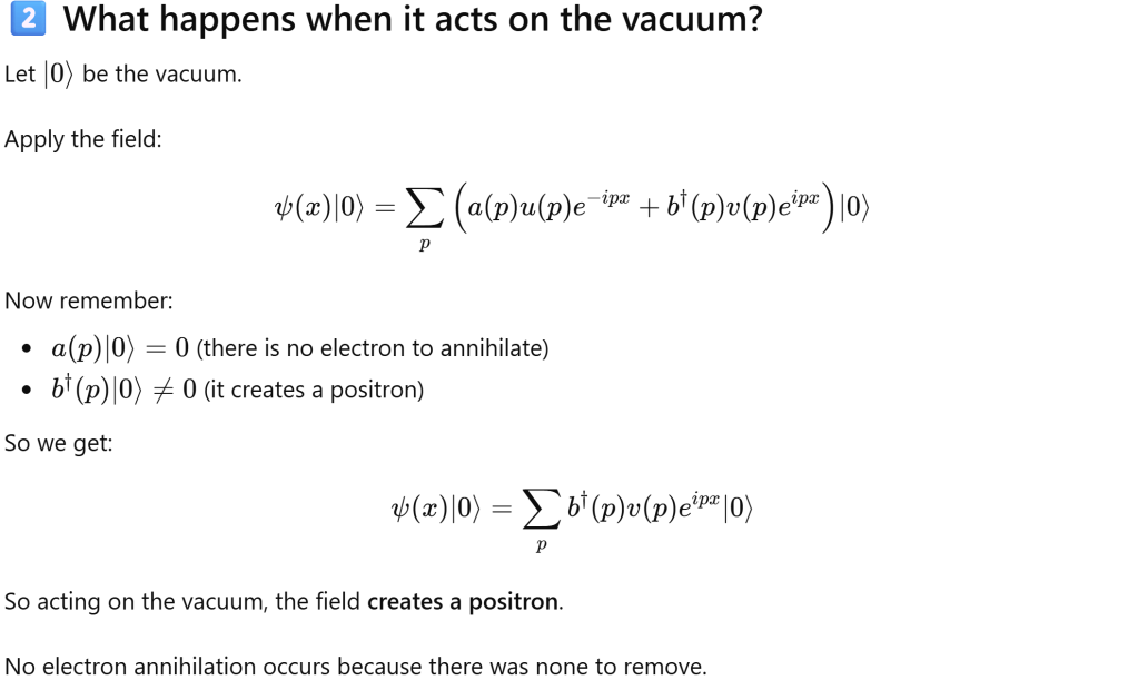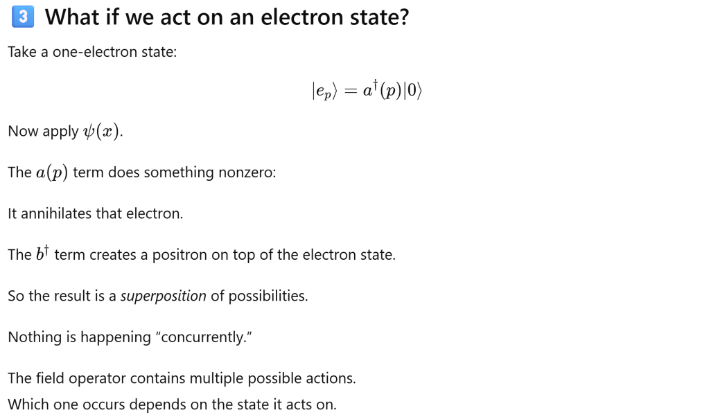 To deeply understand, we first need to be crystal clear that ψ(x) is not describing something that is “happening.” It is an operator-valued field.